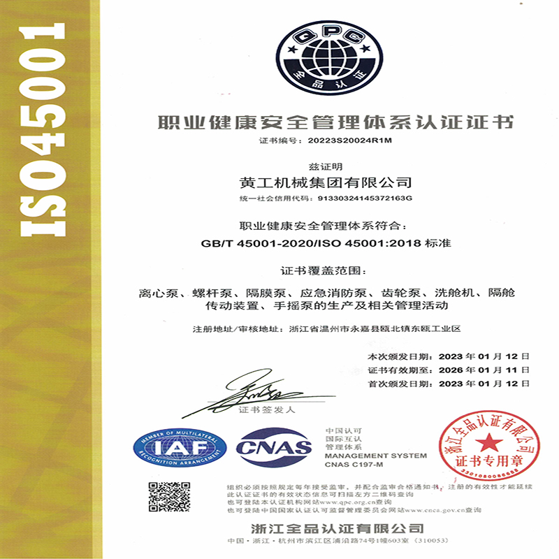黃工機械集團有限公司先后獲得IS09001國際質(zhì)量認證;CCS、BV、ABS、RINA、KR、NK、DNN、GL、LR等船級社船用產(chǎn)品證書;中石油、中石化物資資源市場成員企業(yè),為公司的發(fā)展奠定了堅實的基礎。